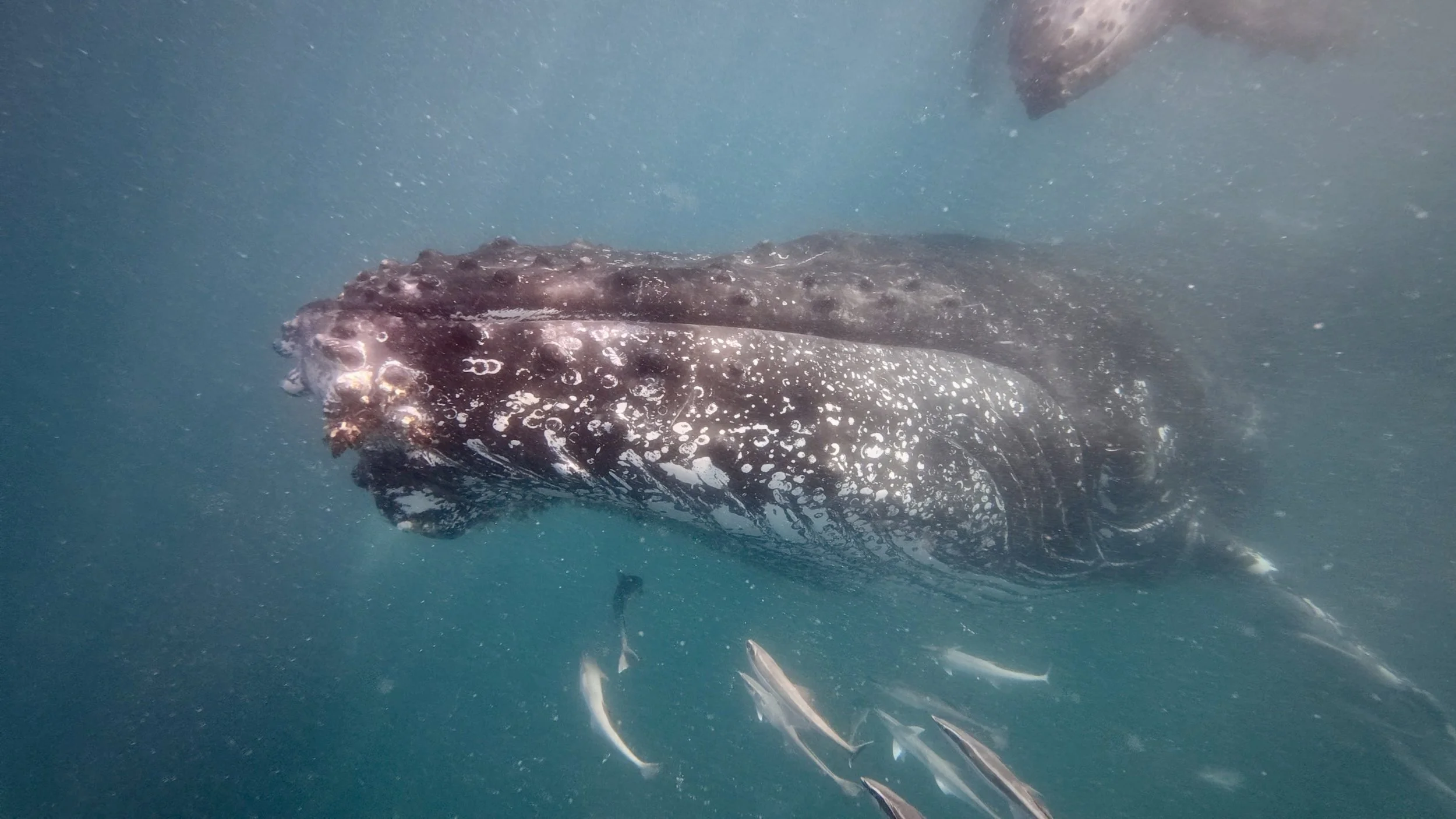 Auf sechs Ausfahrten machen wir uns auf die Suche nach diesen majestätischen Meeresriesen. Besonders berührend ist die Begegnung mit Mutter und Kalb: Die jungen Wale sind oft neugierig und verspielt – und nähern sich manchmal vorsichtig den fremden kleinen Menschen im Wasser, stets unter den wachsamen Augen ihrer riesigen Mutter.
