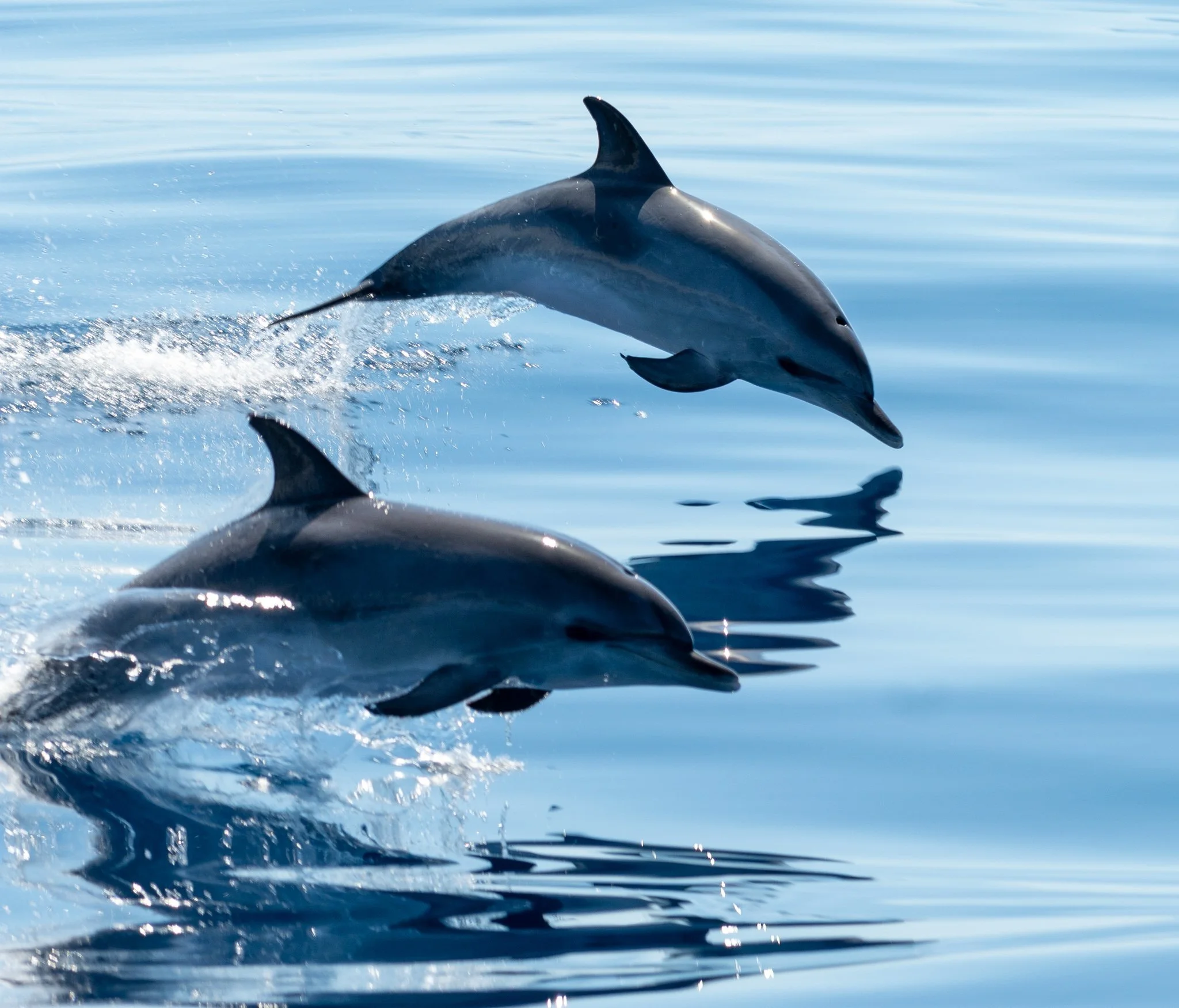 Auf jeder Tour finden wir eine oder mehrere Delfinarten. Dazu gehören der Grosse Tümmler, Gewöhnliche Delfine und Zügeldelfine. Oft kommen diese geselligen Tiere sogar ganz nahe an die Boote ran oder sogar bis in die Bugwelle! Dies sind immer tolle Erlebnisse.