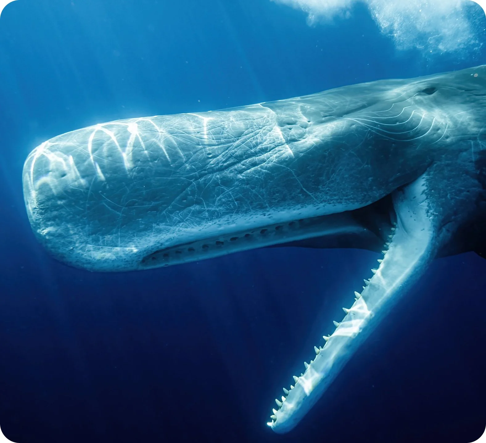Swimming with toothed whales and dolphins is a little more complicated than with the blue whales, as sperm whales in particular are still hunted in this region to this day and are correspondingly shy.