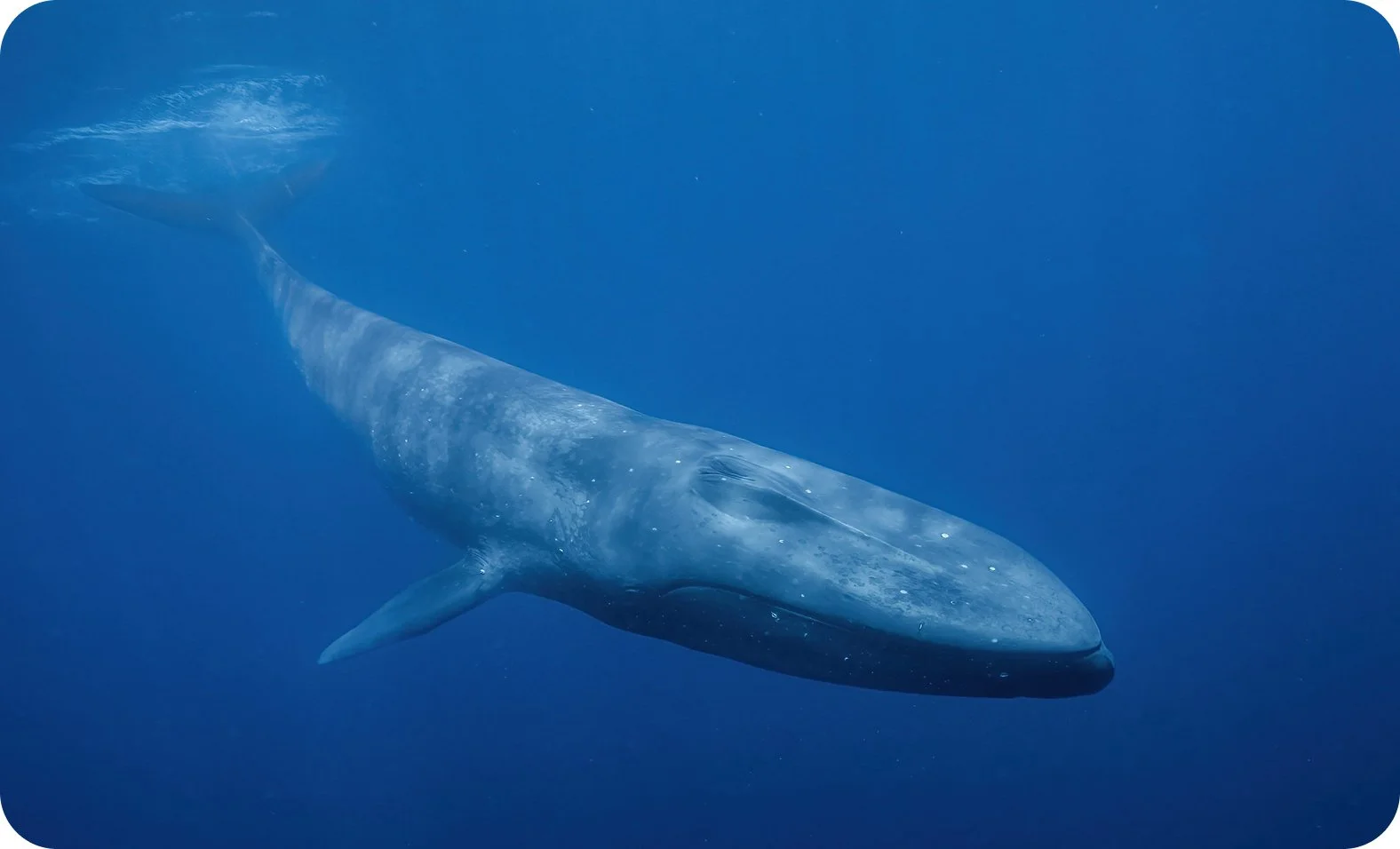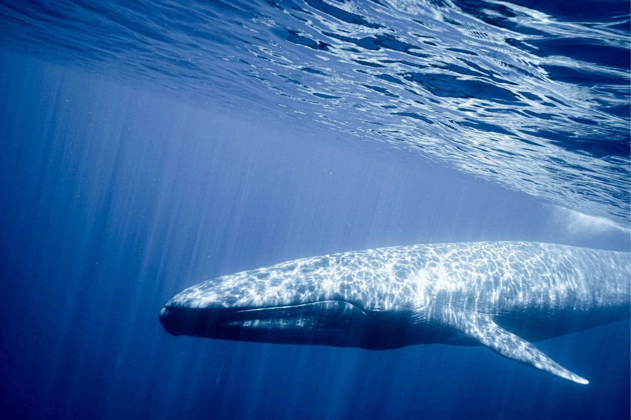 Swimming with a blue whale is one of the most impressive things you can experience. These 25-metre-long colossi glide gently past us on their journey south.